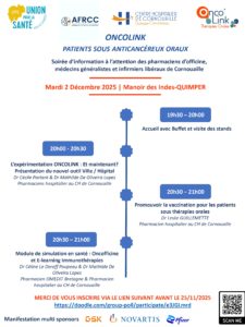 La CPTS du Pays de Quimper, en partenariat avec le Centre Hospitalier de Cornouaille, organise une soirée d’information consacrée à la prise en charge des patients sous thérapies orales en cancérologie.